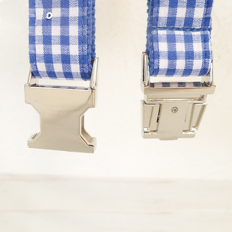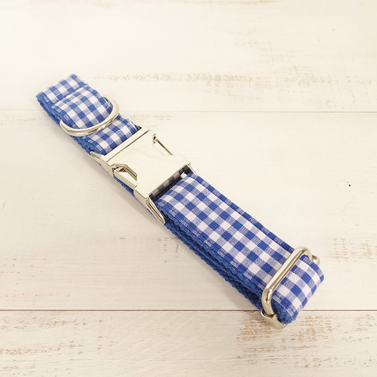 Elevate your furry friend's style with our Blue Plaid Dog Collar. Crafted from high-quality polyester, this collar is designed not only for fashion but also for durability and comfort. The trendy blue plaid pattern adds a touch of flair, making your dog stand out during walks or playdates.